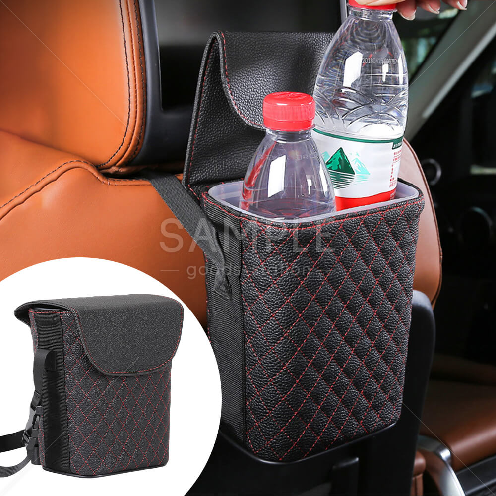 車載 ゴミ箱 カー ゴミ入れ ダストボックス 蓋つき 防水 多機能 吊り下げ 小物 ヘッドレスト レザー 前後部座席 簡単装着 アウトドア 旅行 ピクニック お花見 公園 ブラック