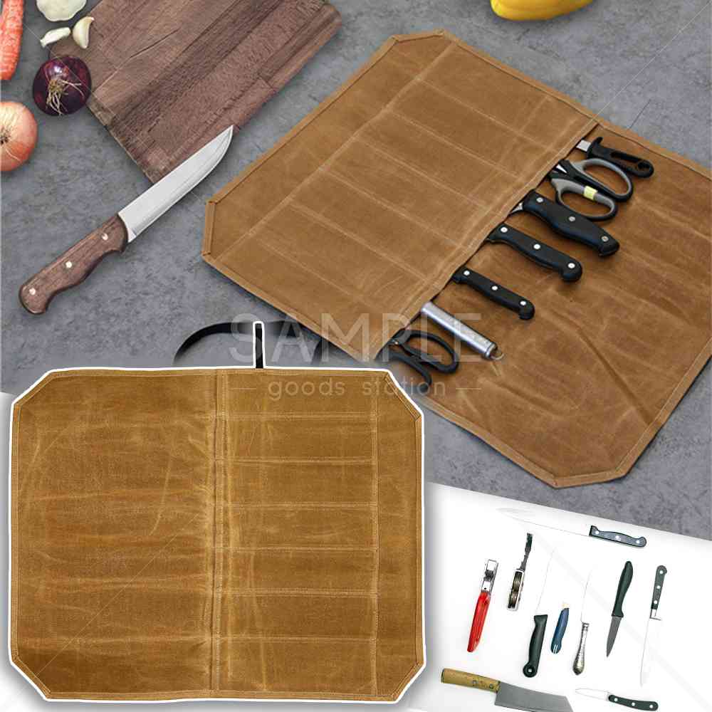 包丁持ち歩きケース 巻物 大容量 7ポケット完備 持ち運び バーベキュー キャンプ 料理教室 調理実習 防水 耐久性 コンパクト (カーキ茶)