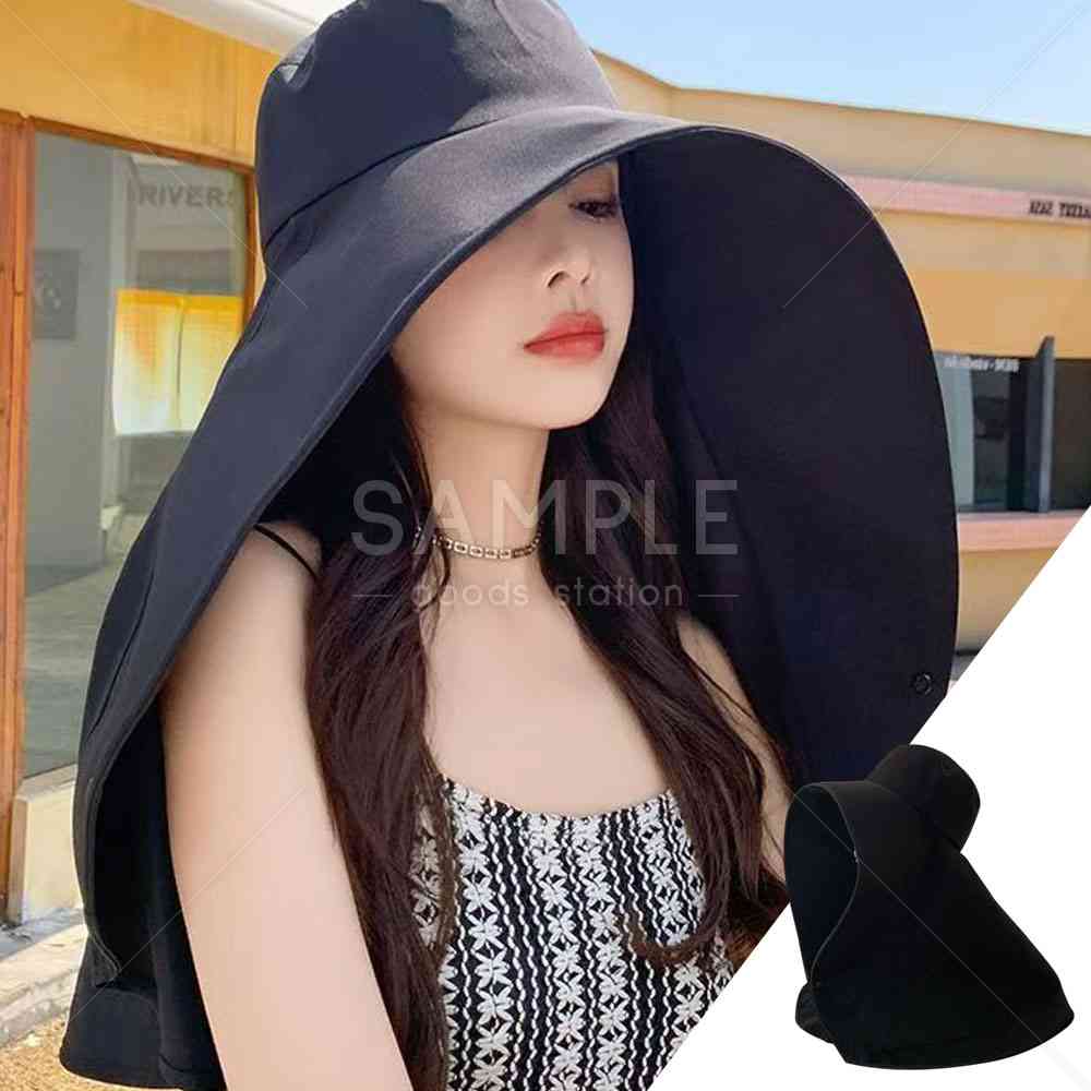 帽子 キャップ ハット ラージブリムサンハット 日焼け防止 UVカット つば広帽子 サンバイザーハット ブラック ポニーテール用スリット付き 軽量 メッシュ 通気性 アウトドア 屋外作業 ハイキング ピクニック 海水浴