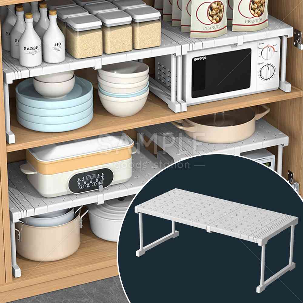 伸縮式収納棚 クローゼット 食器棚 パントリー 靴箱 洗面台 荷物置き 積み重ね 幅調整 スライド 整理整頓 耐久性 組み立て式 (67cm〜88cm×32cm)