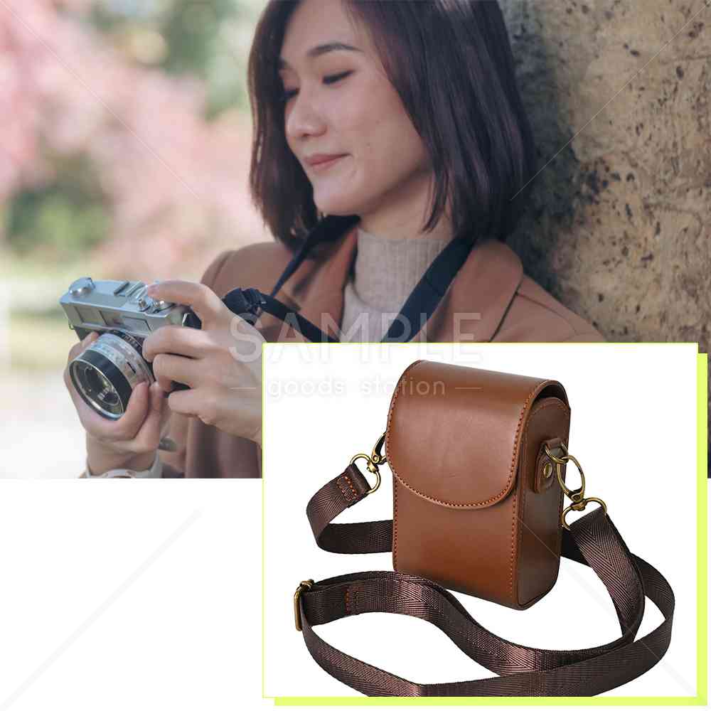 デジタルカメラケース 持ち運び 旅行 町散策 アウトドア 肩紐付き PUレザー ミニショルダーバッグ お洒落 高級感 マグネット開閉 (ダークブラウン)