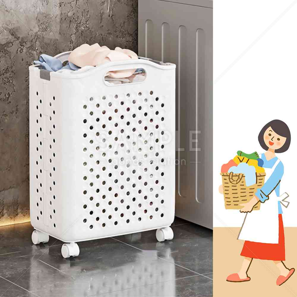 折り畳み式ランドリーバスケット キャスター付き 大容量 32L 洗濯カゴ 動かせる 負担軽減 持ち手付き 安定感 洗濯機から干場へ