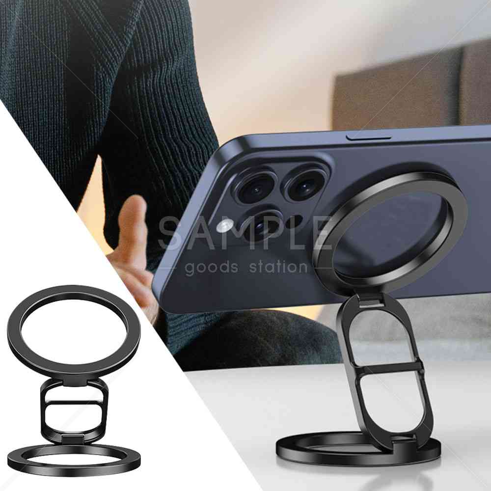 マグネット スマホスタンド スマホリング 折り畳み式 アルミ合金製 MagSafe対応 コンパクト ミニサイズ 動画鑑賞 スマホカーナビ 360度自由調整可能 ダッシュボード 冷蔵庫 デスク シンプルデザイン