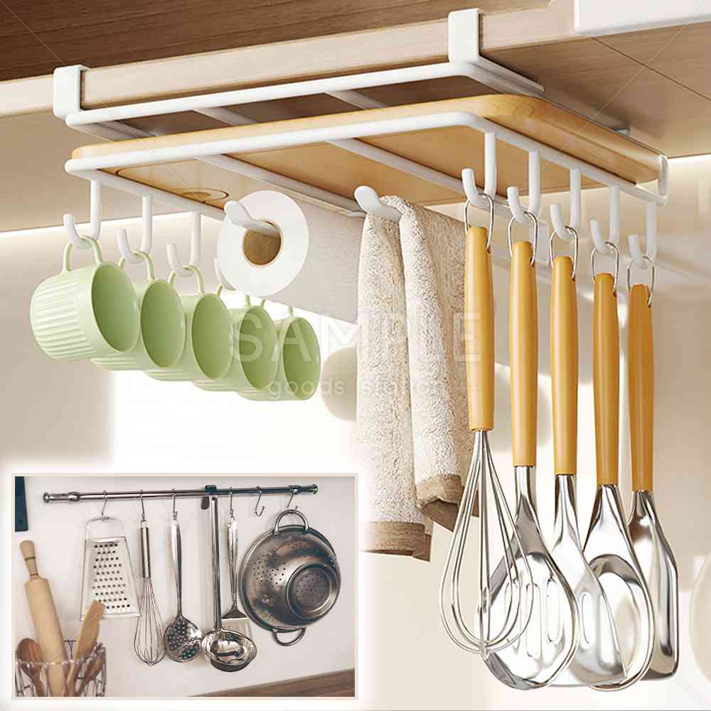 吊り下げ式まな板スタンド 多機能収納 省スペース 戸棚固定 フック10個付き コップ 布巾 キッチンツール ペーパーホルダー 差し込みタイプ 工具不要 簡単DIY 空間利用 (ホワイト 25cm×25cm×10cm)