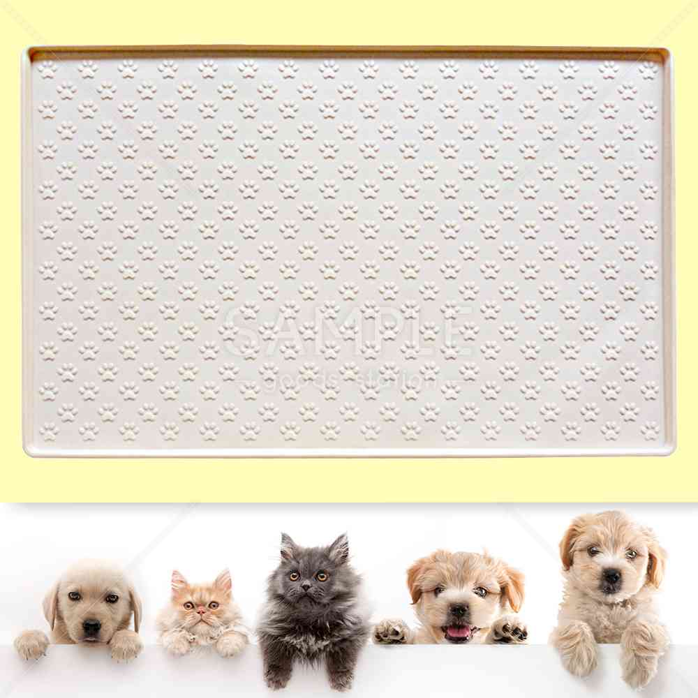 ペット用シリコンマット トイレトレー 滑り止め 零れない はみ出し防止 洗える お手入れ簡単 ソフトタッチ 肉球柄 (ホワイト 40cm×60cm)