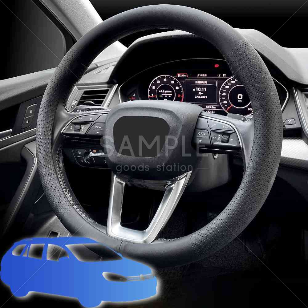 車用ハンドルカバー ナッパレザー使用 内装カスタム 滑り止め 握りやすい フィット感 簡単装着 切れにくい 直径約38cm (ブラック)