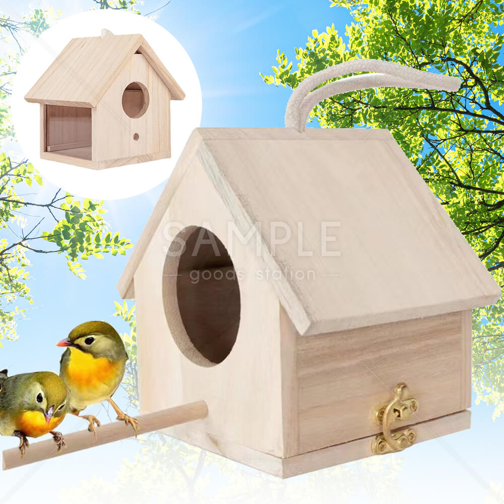 木製バードハウス アクリル製の小窓付き 木材 吊り下げようのロープ付き シンプルなデザイン 自然な風合い 出入りしやすい バードウォッチング 庭 バルコニー 安定感抜群 通気性抜群