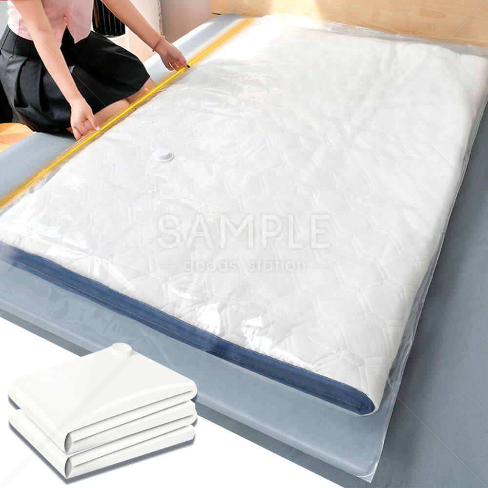 マットレス 布団 圧縮袋 2枚セット 引っ越し用 収納用 持ち運び用 コンパクト ダブルジッパー 吸引口付き 掛け布団 敷布団 ダニ対策 カビ対策 防湿 衣類 エアバルブ 防水生地 頑丈