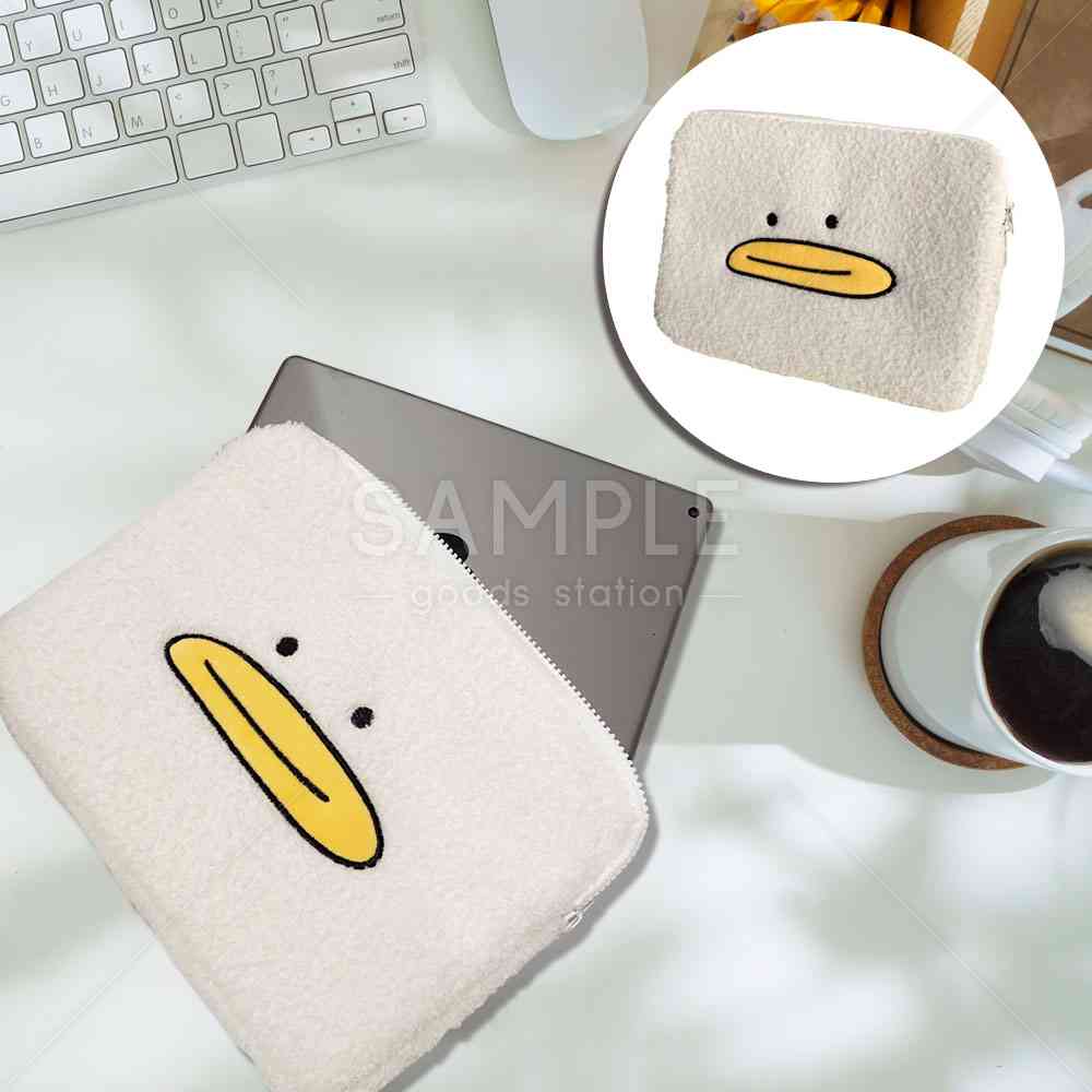 タブレットケース ノートパソコンケース かわいい アヒル顔 13〜14インチ対応 タブレット ノートパソコン タッチペン用ゴムバンド完備 ファスナー付き クッション性 衝撃吸収 持ち運び バッグinバッグ